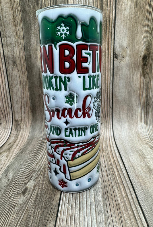 Bubbly Torn Between Lookin' Like A Snack + Eating One Christmas 20oz Skinny Tumbler